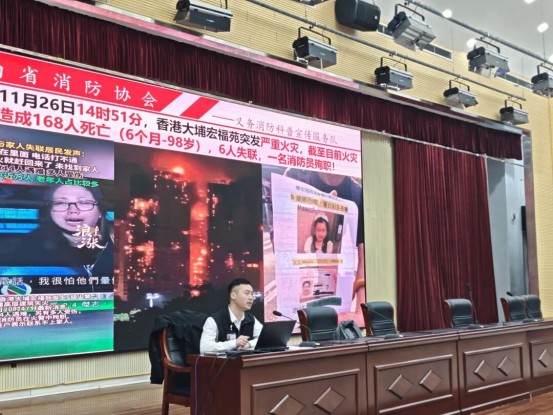 讲座特邀河南省消防协会义务消防科宣传服务队姚泽铎教员进行主讲。姚教员结合近年来我省乃至全国发生的典型消防事故案例,深入剖析了火灾发生的原因及惨痛后果。一个个触目惊心的真实案例让在场师生深受震撼,深刻认识到了“隐患险于明火,防范胜于救灾”的重要性。