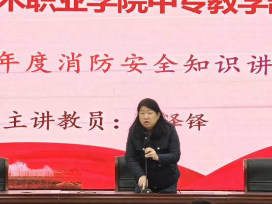 讲座结束后,张薇副书记作总结发言。她首先对姚泽铎教员的精彩讲解表示感谢,并指出消防安全是学校各项工作的底线,关乎每一位师生的生命财产安全。她要求全体师生以此次讲座为契机,将安全意识内化于心、外化于行,严格遵守校纪校规,杜绝违规用电行为,共同营造安全、稳定、和谐的校园环境。